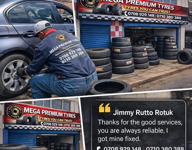 Mega Premium Tyres began as a local automotive tyre service provider in Eldoret, Kenya, created to meet the growing demand for quality tyres, fast fitting, and reliable automotive support in Uasin Gishu County and the Western Kenya region. the company has grown from a small tyre outlet into one of Eldoret’s trusted tyre service centres, known for its commitment to value, customer care, and Very competitive pricing. The business expanded its offerings to include mixed-brand tyres for passenger cars, SUVs, vans, and light trucks, catering to both retail and wholesale clients. With a focus on excellent service, expert fitting, and dependable tyre solutions, Mega Premium Tyres has built a reputation for reliability and customer satisfaction in the region.